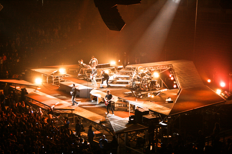LINKIN PARK Minutes to Midnight Tour Set Design: Stephen Pollard with AJ Pen Lighting Design: AJ Pen Production Manager: Jim Digby This tour marked the first collaboration between Stephen and lighting designer AJ Penn. Linkin Park's Mike Shinona's hybrid vision finds inspiration from Transformers, Tron, Space Invaders and F14 fighter jets. The cantilevered stage set houses an "underworld" of monitors and backline. Above the set hover five translucent video screens with motion control. more>>> |